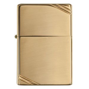 Zippo chặt góc bóng vàng – High Polish Brass Vintage with Slashes 270