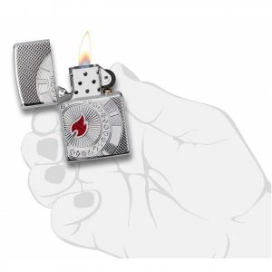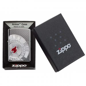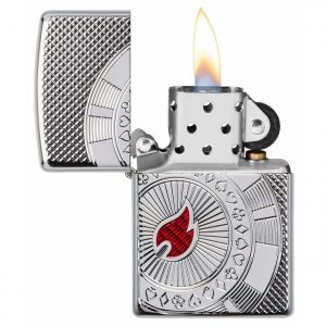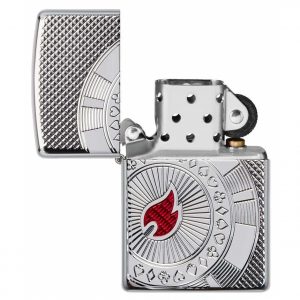 Đây Armor ® Polish Chrome hiển thị sáng hơn một thiết kế chip poker thanh lịch. Chip poker được tạo ra bằng cách sử dụng quy trình khắc sâu trong khi ngọn lửa Zippo tập trung vào chip mang lại màu đỏ cho thiết kế bằng quy trình inlay epoxy.
