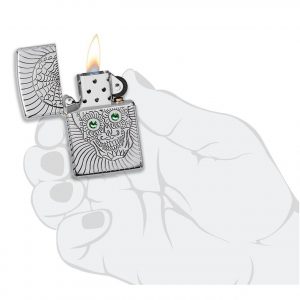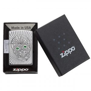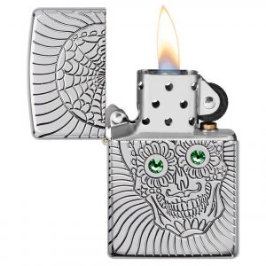 Dia De Los Muertos, hay Lễ hội của Người chết (the Day of the Dead), là một lễ kỷ niệm tái hợp người sống và người chết. Calaveras, là những hộp sọ được trang trí phức tạp thường được vẽ bằng một nụ cười như để cười chính cái chết. Thiết kế Sugar Skull này ghi lại hình ảnh đó một cách hoàn hảo. Một chiếc hộp sọ đang mỉm cười đã được khắc sâu trên bề mặt trước chiếc bật lửa Armor® High Polish Chrome, với các tinh thể Swarovski® được trang trí vào mắt của chiếc hộp sọ.