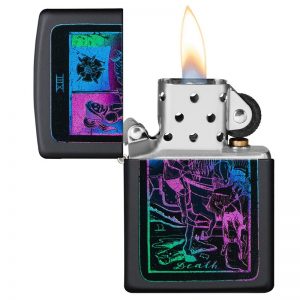 - Chất liệu vỏ: Đồng thau nguyên khối, Thiết kế lá bài Death Tarot sử dụng mực có công thức đặc biệt, nghệ thuật hình ảnh màu để khi thiết kế tiếp xúc với ánh sáng cực tím.