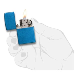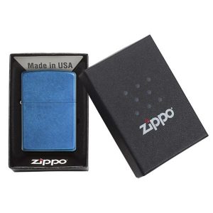 Zippo Cerulean Xanh Dương 24534 với chất liệu đồng thau, và được sơn tĩnh điện phủ bóng bên ngoài, với màu sắc nổi bật.