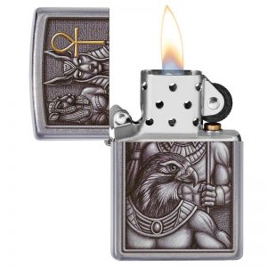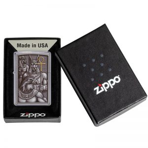 - Chất liệu vỏ: Đồng thau nguyên khối, các vị thần Ai Cập cổ đại Anubis, Horus và Bastet được tạo ra bằng quy trình tạo ảnh màu trên bật lửa đồng thau, nền mạ Street Chrome.