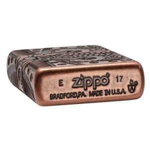 Zippo Gears các chạm khắc bằng cảm hứng từ steampunk, khắc sâu được nhấn mạnh bởi phong cách thời trang của Zippo Armor Antique Copper được sự chất liệu đồng thau nguyên khối. Điều đặc biệt ở đây là sử dụng công nghệ khắc 360 – Dergee trên nền của bật lửa zippo armor nổi bật bằng những họa tiết tỉ mỉ không bong chóc và lâu phai.