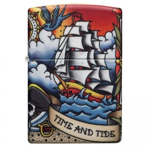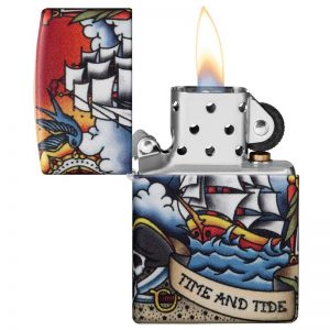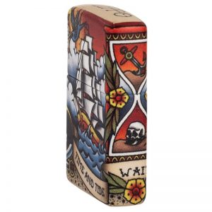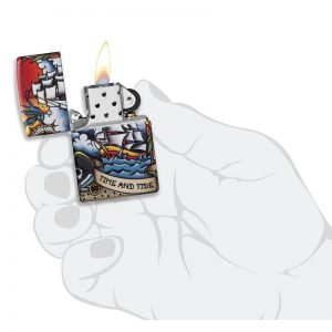 - Chất liệu vỏ: Đồng thau nguyên khối, phủ hoàn toàn bề mặt của bật lửa với các tác phẩm nghệ thuật hình xăm hàng hải cổ điển.
