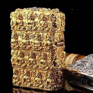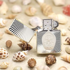 Zippo Phật bà đồng thau mạ bạc, chạm vàng 10k