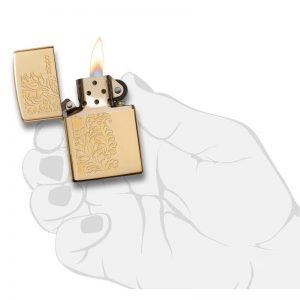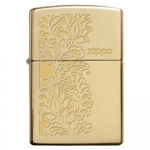 - Chất liệu vỏ: Đồng thau nguyên khối, thiết kế hình hoa được chạm khắc tinh xảo trên nền Zippo đồng thau cao cấp