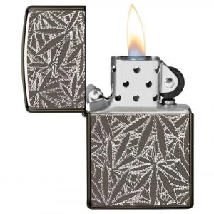 Zippo không chỉ phát minh ra các phương pháp trang trí mới, đội ngũ thiết kế cũng đang đẩy các khả năng thiết kế phổ biến nhất đến những giới hạn mới thú vị.Trên thiết kế bật lửa Armor ® này, lớp hoàn thiện Black Ice ® cực kỳ nổi tiếng được trang trí bằng những chiếc lá có vẻ như hoàn toàn 3-D, nhưng thực tế đã được tạo ra thông qua thao tác nghệ thuật thông minh của quy trình khắc sâu của Zippo.