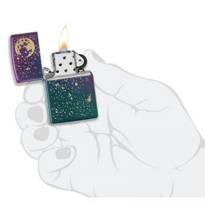 - Chất liệu vỏ: Đồng thau nguyên khối, Thiết kế Starry Sky này sử dụng phương pháp khắc laser để tạo ra những ngôi sao và mặt trăng lấp lánh trên bốn mặt của chiếc bật lửa.
