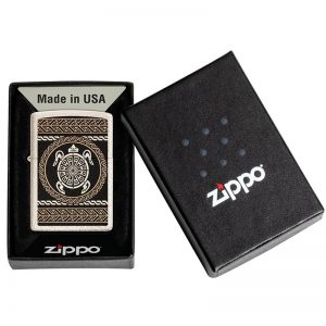 - Chất liệu vỏ: Đồng thau nguyên khối, sử dụng quy trình chụp ảnh màu để in thiết kế Rùa này trên bật lửa vỏ đồng thau phủ sơn tĩnh điện màu trắng ánh kim
