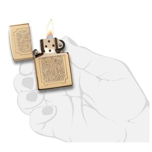 Sử dụng nguyên liệu đồng thau nguyên khối, sản xuất và nhập khẩu từ Mỹ bật lửa zippo vỏ dày Zippo Windproof 29436 High Polish Brass họa tiết đucợ chạm khắc tỉ mỉ và được mạ vàng, không chỉ là một sản phẩm mà còn cả một nghệ thuật.